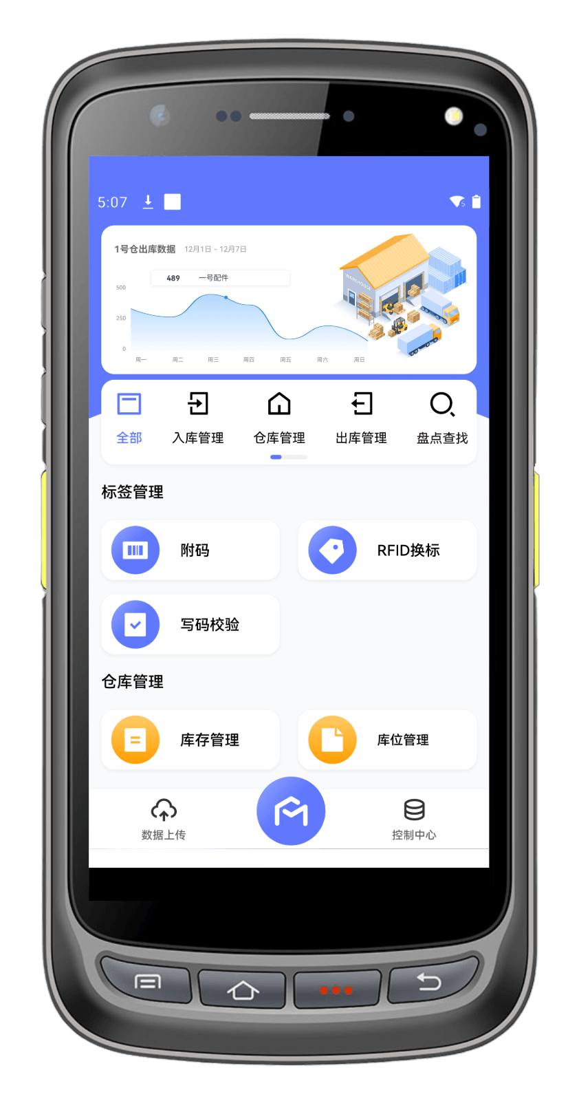 可快速批量扫描RFID标签,实现批量出入库、盘点、