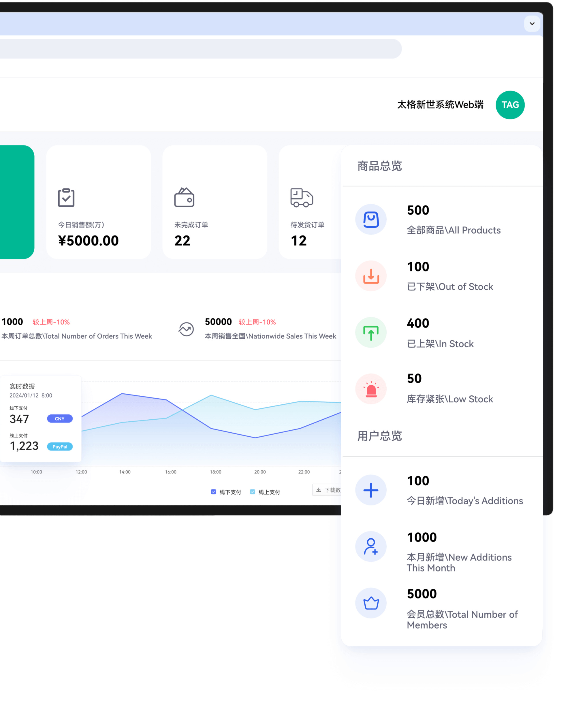 TagNext辅助集团客户实现全流程管理、驾驶座舱式展示,更有大量数据报表以供管理者决策,真正实现数据流和业务流的统一。