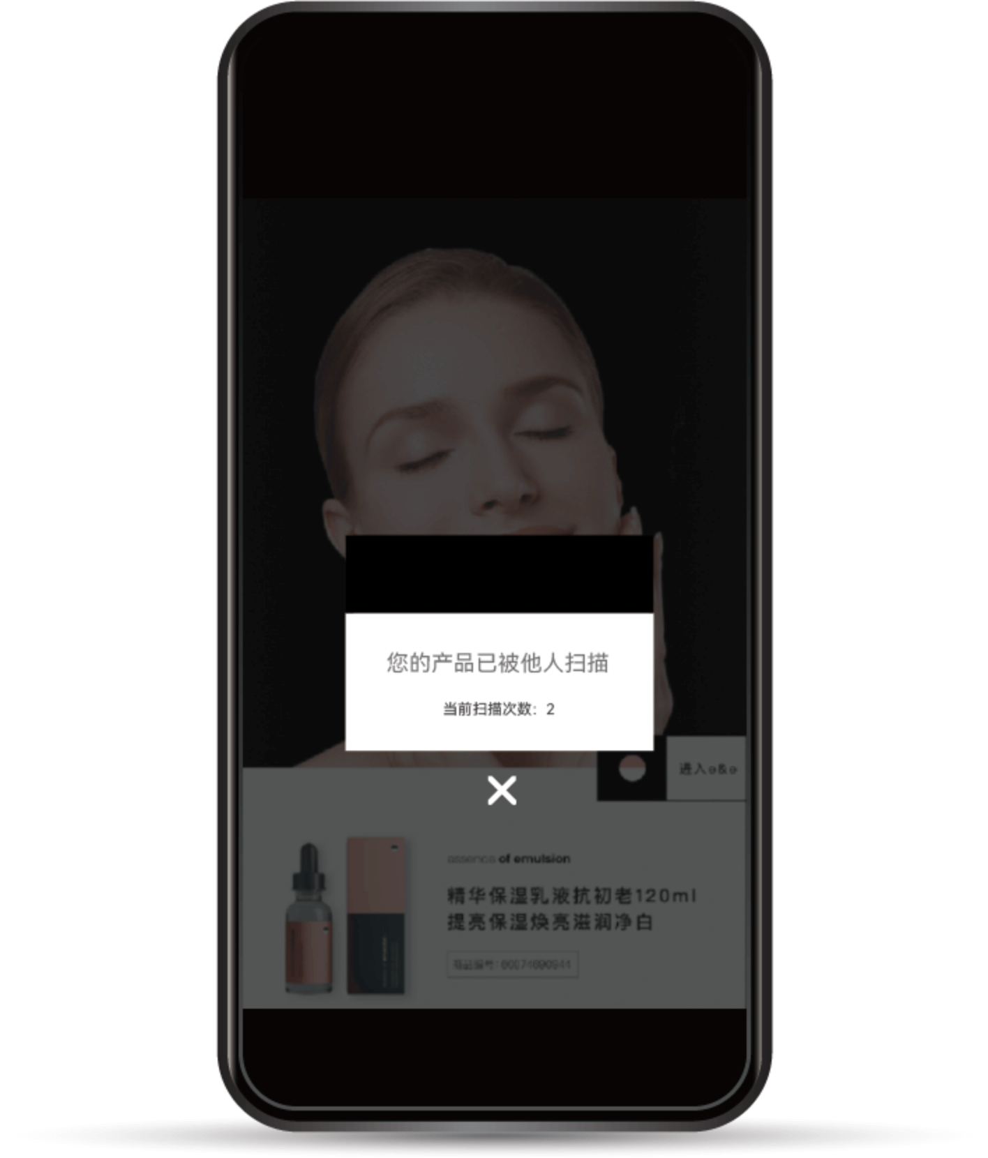 消费者可以使用扫一扫功能,快速验真防伪,通过登录绑定账号,记录积分、发放红包等功能,让企业实现对消费者的精准用户画像,最后一公里的渠道管控以及私域营销引导。